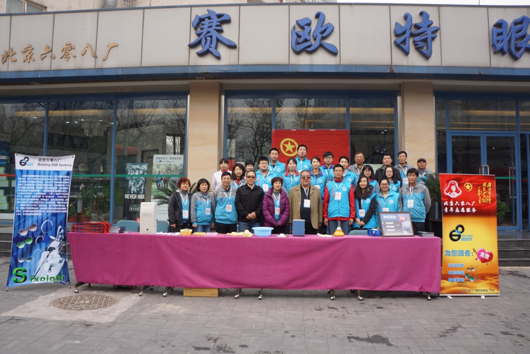 在毛泽东同志提出“向雷锋同志学习”53周年之际,3月5日北京六零八厂团支部及赛欧特眼镜门市部的全体技师,在《学习雷锋好榜样》、《年轻的朋友来相会》歌声中,投入到“学雷锋,我奉献,我快乐的志愿服务中来”,期间,一轻团委书记姚鹤鹏、北京玻璃集团公司团委副书记管文祺、北京六零八厂党支部书记张希雨及厂领导班子一起参与志愿服务。为百姓免费眼睛验光、眼镜清洗、眼镜修理、眼镜更换鼻托等。青年团员及各科室、锅炉配电室师傅们也佩戴志愿者胸牌参与厂区清洁志愿劳动中,几个小时后,被洗刷后鱼池的围栏和被擦拭的灯杆、被清理的下水道口等,犹如崭新般。此次活动增强了青年团员奉献、团结精神。打造和宣传了赛欧特品牌,彰显了国有企业服务社会、服务百姓之宗旨。