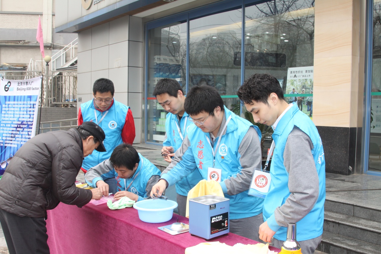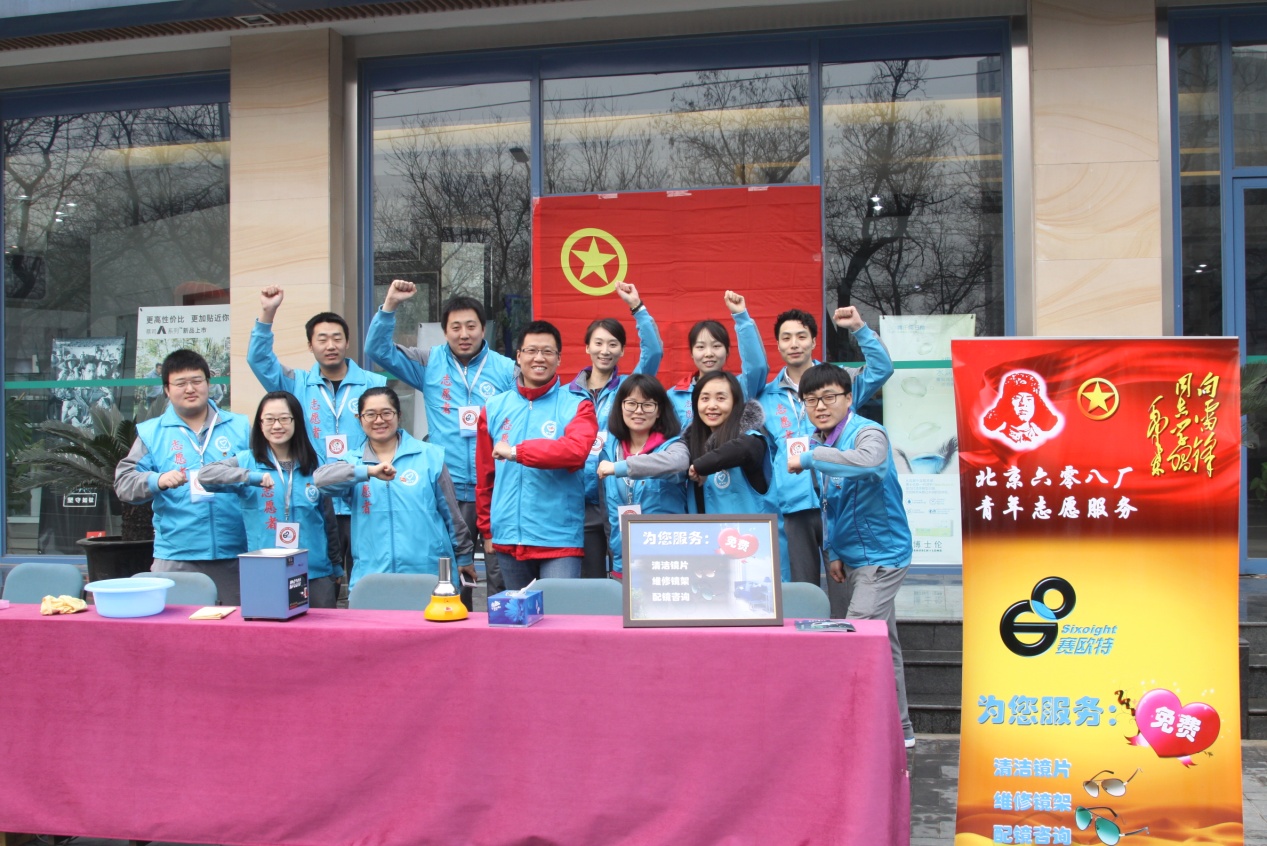 在毛泽东同志提出“向雷锋同志学习”53周年之际,3月5日北京六零八厂团支部及赛欧特眼镜门市部的全体技师,在《学习雷锋好榜样》、《年轻的朋友来相会》歌声中,投入到“学雷锋,我奉献,我快乐的志愿服务中来”,期间,一轻团委书记姚鹤鹏、北京玻璃集团公司团委副书记管文祺、北京六零八厂党支部书记张希雨及厂领导班子一起参与志愿服务。为百姓免费眼睛验光、眼镜清洗、眼镜修理、眼镜更换鼻托等。青年团员及各科室、锅炉配电室师傅们也佩戴志愿者胸牌参与厂区清洁志愿劳动中,几个小时后,被洗刷后鱼池的围栏和被擦拭的灯杆、被清理的下水道口等,犹如崭新般。此次活动增强了青年团员奉献、团结精神。打造和宣传了赛欧特品牌,彰显了国有企业服务社会、服务百姓之宗旨。
